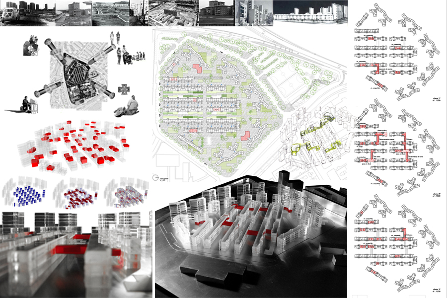 La materialización del proyecto se sintetiza en tres actuaciones principales: coser de forma transversal la actividad residencial que actualmente se produce con una dirección longitudinal por medio de las infraestructuras de colectividad; la segunda actuación principal radica en la cuestión tipológica de la residencia; y por último la introducción de una nueva escala y concepto del espacio público.